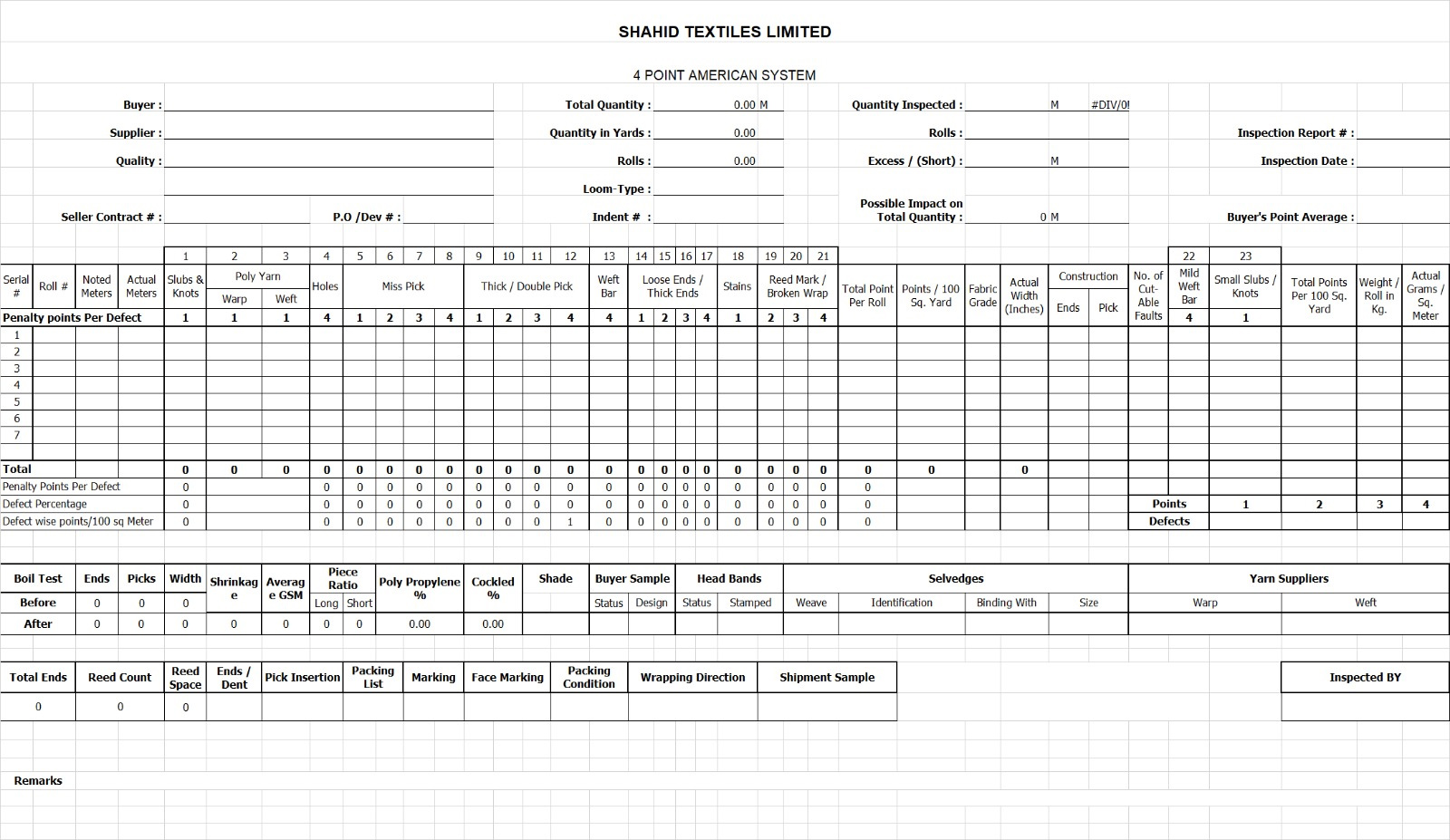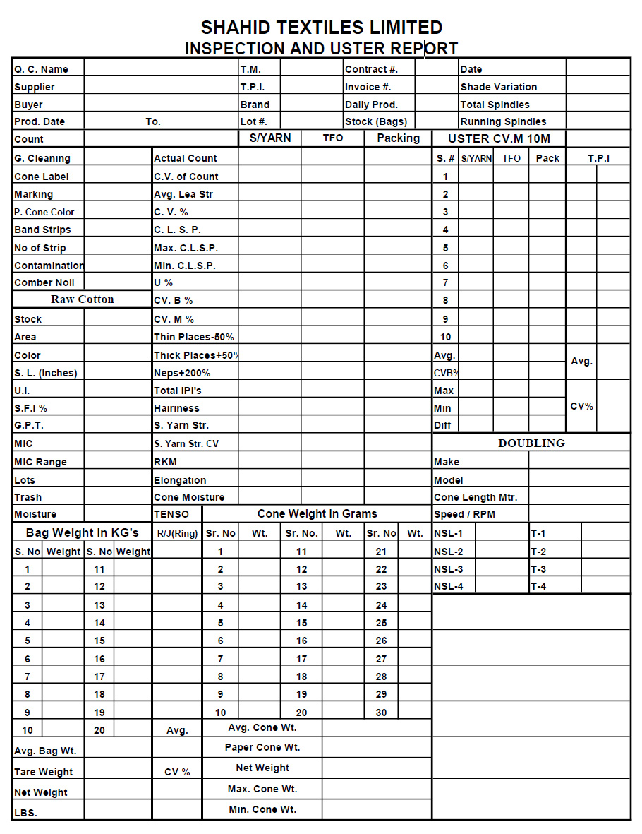 Yarn Inspection Report